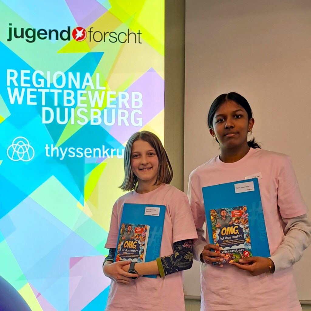 Am Mittwoch, den 26.02.2025, fand der Regionalwettbewerb von „Jugend forscht“ und „Jugend forscht Junior“ bei ThyssenKrupp in Duisburg statt. Pünktlich zum 60-jährigen Jubiläum des renommierten Wettbewerbs ist auch das Landrat-Lucas-Gymnasium mit zwei sehr engagierten Nachwuchsforscherinnen vertreten, deren Arbeit gleich mit mehreren Preisen geehrt wird.