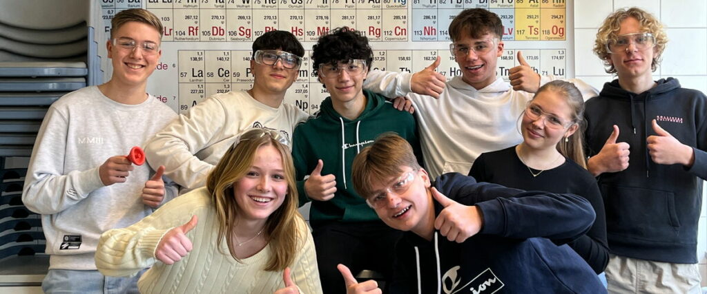 In den Klassen 9 und 10 (G9) haben die Schülerinnen und Schüler in fünf verschiedenen Differenzierungskursen die Möglichkeit, ihr Interesse im MINT-Bereich weiter zu verfolgen. Hier liegen mit den Kursthemen Biologie, Chemie, Mathematik/Informatik und Physik/Informatik zahlreiche Wahlmöglichkeiten vor.